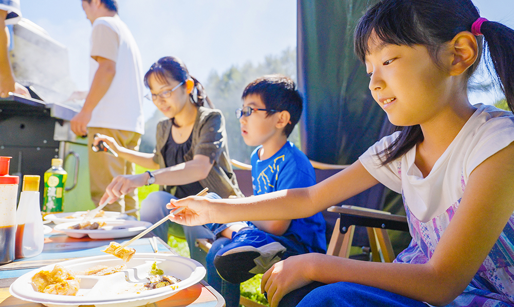 ゲレンデに設営されたかまぼこ型テントと高性能のバーナーグリルを使用して行うデイキャンプスタイルのBBQです。BBQに必要な機材は全てそろっており、食材も事前に予約注文できるため手ぶらで楽しむことができます。注文できる食材セットは、富士桜ポークをはじめ地元食材を使用したボリュームのあるセットをご用意しました。その他キッズセットもあるためファミリーでの利用に最適です。