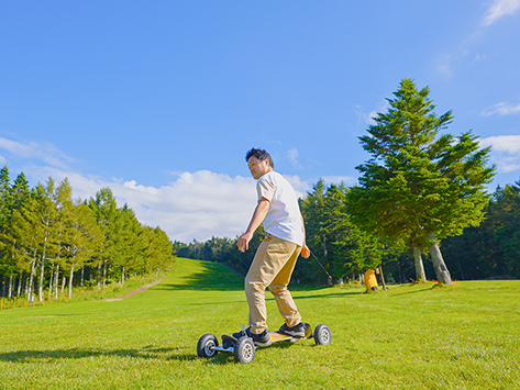 営業を開始するのは、「マウンテンバイクコース」と、開放的な芝生のゲレンデで行う「ふじてんゲレンデBBQ」、昨シーズンから導入した1300mの芝生のゲレンデを駆け降りる三輪カート「マウンテンカート」、さらにポッカールやグラススキー、マウンテンボードなど芝生のゲレンデで楽しめる「グリーンスポーツ」、そして富士山の麓の大自然を満喫しながら展望デッキが設置されたコースなども散策できる「トレッキング」です。子どもから大人まで楽しめるアクティビティが揃い、レンタル品も充実しているので初めての方でも安心して体験できます。