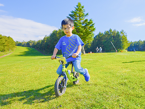 プロMTBライダー・高橋大喜氏が監修を行い、ビッグジャンプが連続する「リトルウィスラー」など上級者でも満足できる本格コースが揃います。また、芝生のゲレンデを駆け降りる「グラスホッパー」など初心者でも走りやすいコースも整備されています。レンタルバイクも様々なグレードのものが揃っており、誰でも気軽に体験できます。