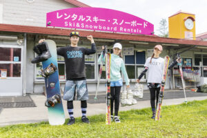 さらに、スキー・スノーボードの板やブーツなど各種レンタルも充実しています。冬のスキー・スノーボードをそのまま使用することもできますが、自分の板をお持ちいただかなくてもいい為、身軽にお越しいただけます。