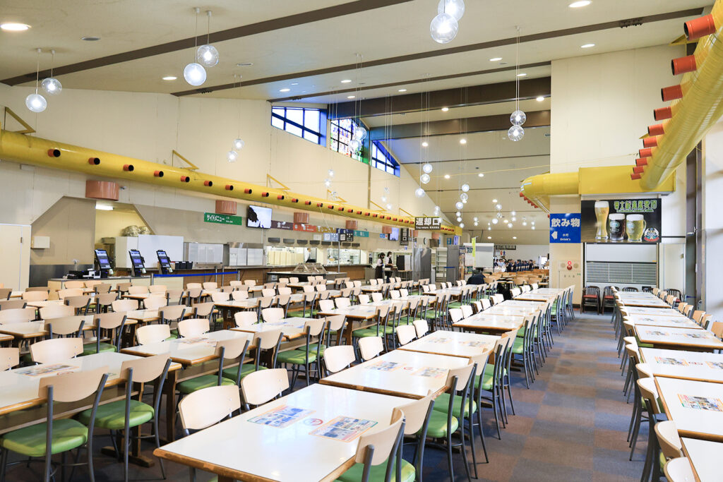 食券機で食券購入→モニターに番号表示→カウンターに食事をとりに行くという方式に変更しました。これにより、混雑時でも比較的スムーズに食事を楽しめます。