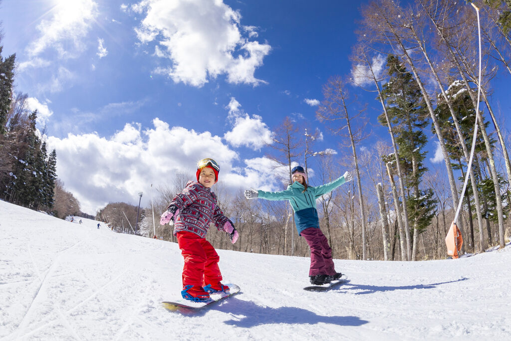 今シーズンで営業開始から39年目を迎えるふじてんスノーリゾートは、初心者から上級者まで楽しめる7本のバリエーション豊富なコースや、お子様向けの雪遊びエリア、富士山と河口湖の絶景が広がる展望リフト&デッキなど、多彩な魅力を満喫できます。また、スノーパークも併設しており、キッカー、レール、ボックスなど人気アイテムを数多く設置しています。