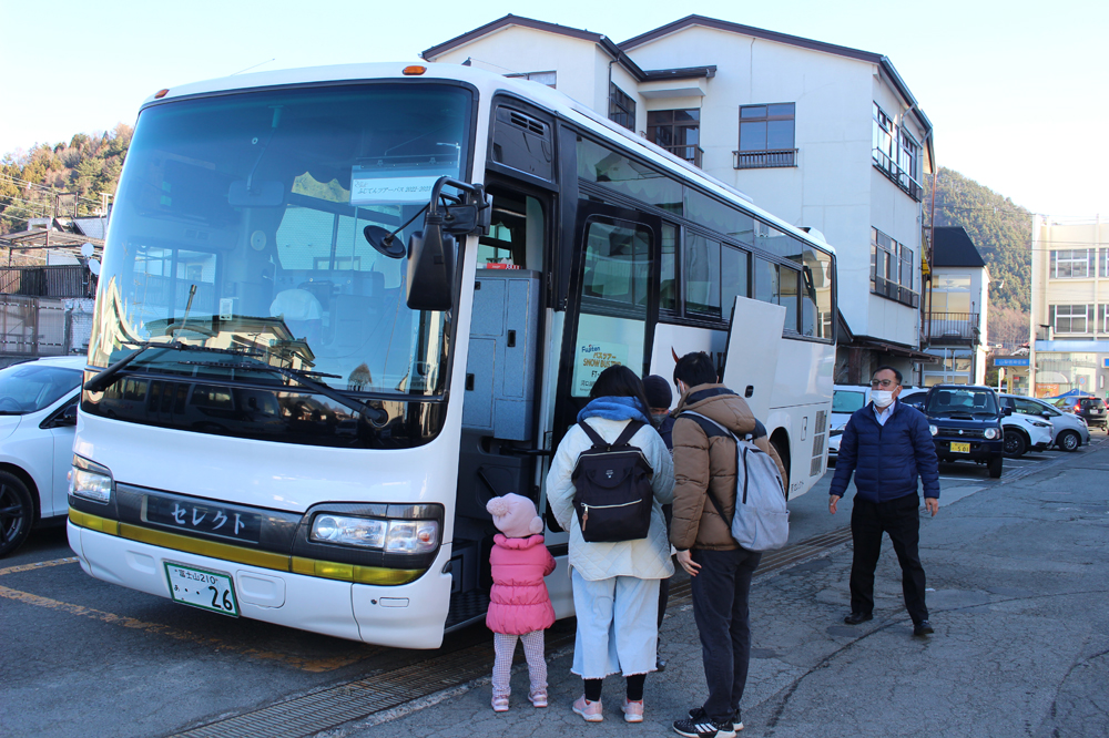 【バス】河口湖駅前より往復シャトルバス運行(運行期間:12/26~3/1 料金:往復4,000円)